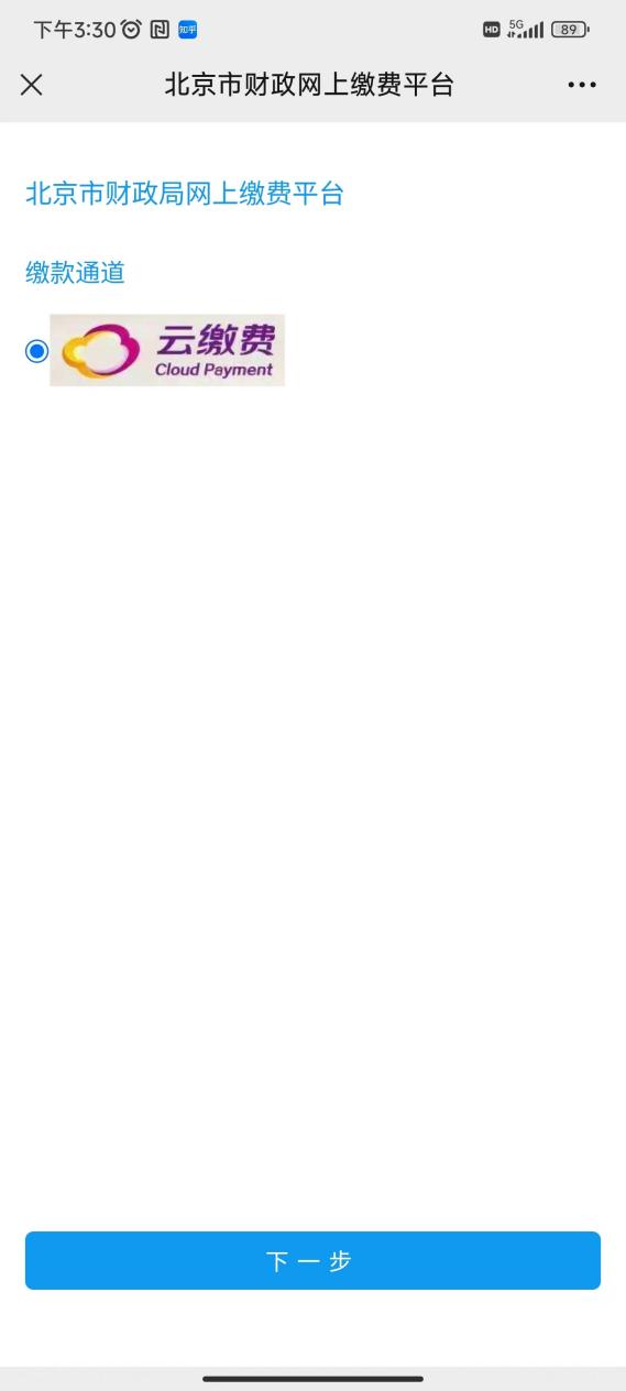 第六步:选择缴款通道并完成缴费,完成缴费后需等待几分钟方可查看到票据。也可以缴费后待时间允许时,点击“我的”——“我的发票”查看电子票据。