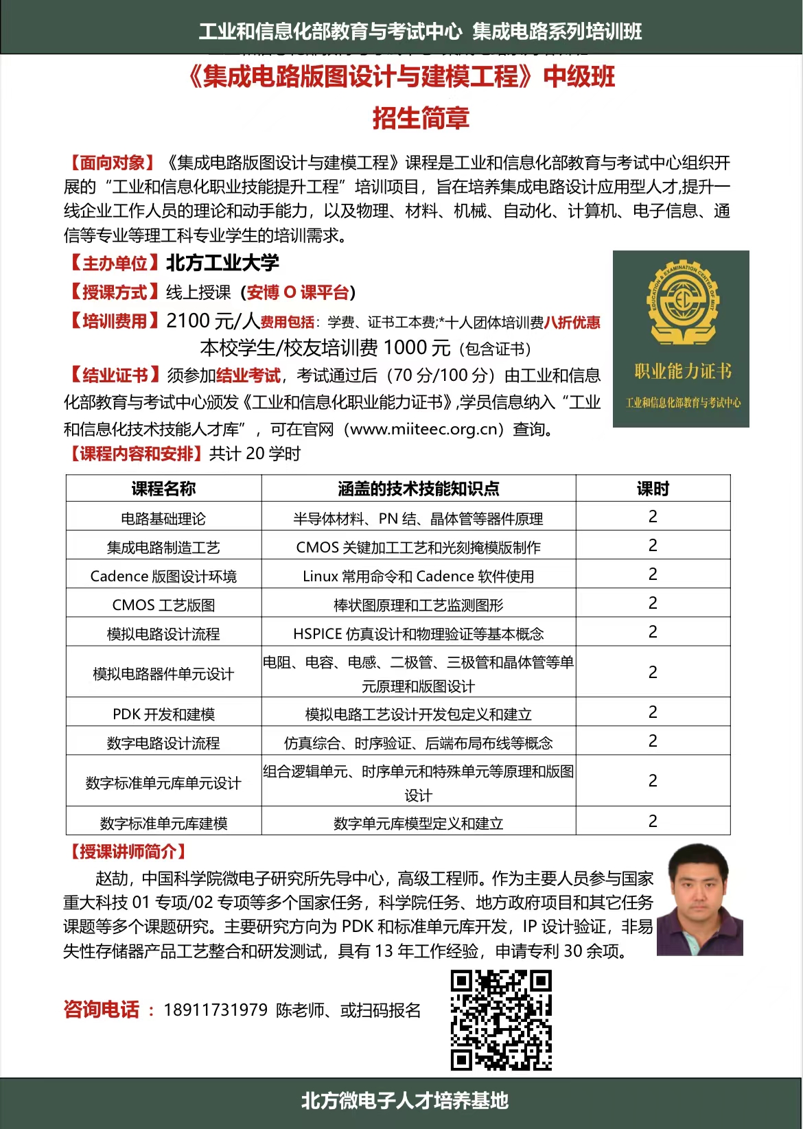 《集成电路版图设计与建模工程》中级班招生简章