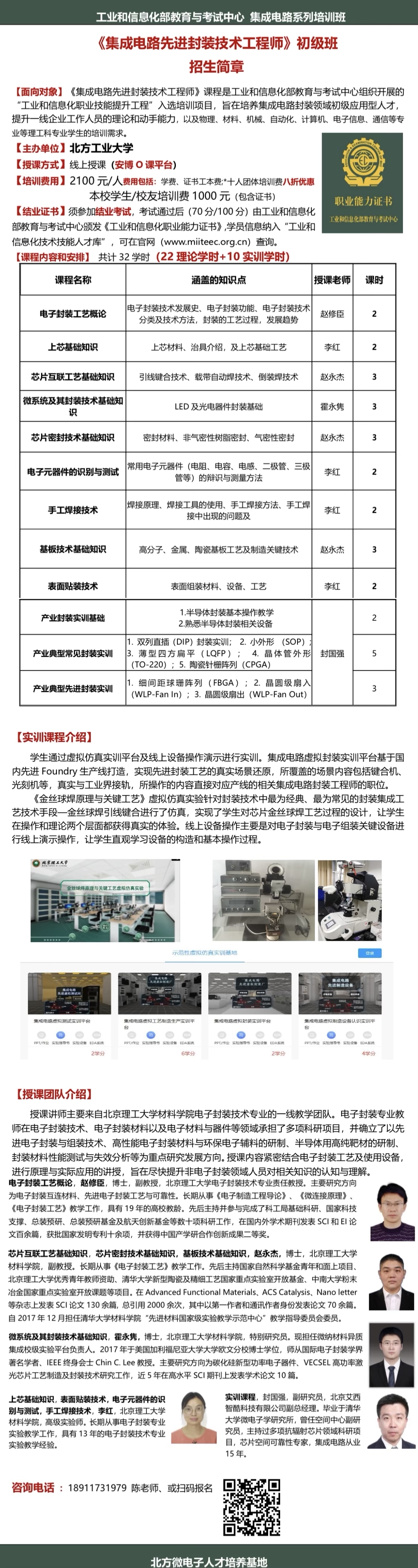 《集成电路先进封装技术工程师》初级班招生简章